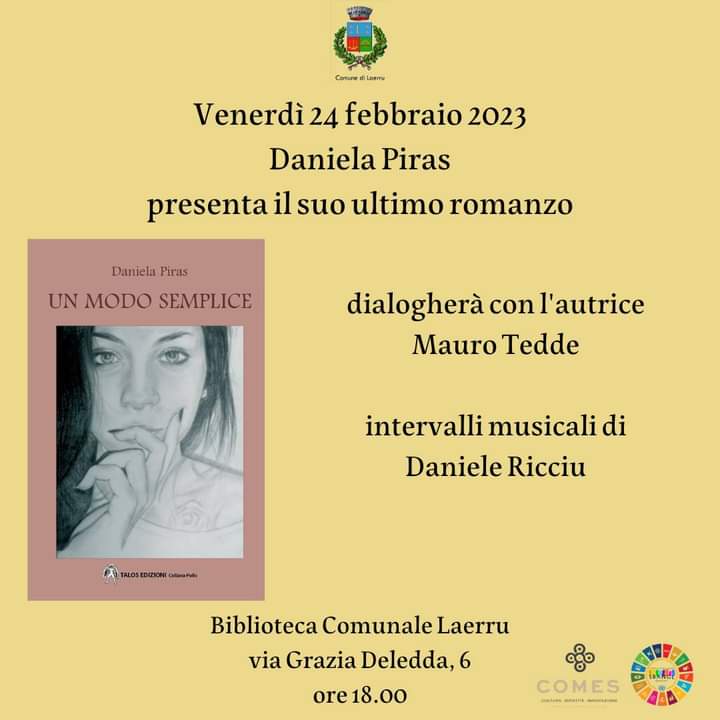 Laerru. Venerdì 24 febbraio la Biblioteca Comunale di Laerru inaugura una serie di presentazioni di libri. Il primo evento vede protagonista il romanzo “Un modo semplice”, l’ultimo libro della scrittrice Daniela Piras. L’appuntamento è fissato per le ore 18:00, in via Grazia Deledda 6. A dialogare con l’autrice sarà il giornalista Mauro Tedde. Gli intermezzi musicali saranno curati dal sassofonista Daniele Ricciu (Danyart).