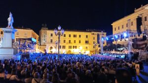 Il palco rialzato, consentirà una visione nitida e l’amplificazione diffonderà la musica in tutta l’area. I numerosi tavolini dei locali della piazza diventeranno così, per una sera, palchi d’opera da cui godere dello spettacolo e la piazza (un ettaro di terreno) un’enorme platea.