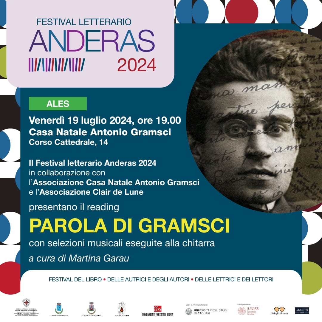 Ales. Il Festival letterario Anderas fa tappa ad Ales, domani 19 luglio, ospite della Casa Natale Antonio Gramsci (corso Cattedrale 14). Per celebrare il grande intellettuale-politico-linguista sardo, in collaborazione con l’associazione Clair de Lune, è stato organizzato il reading ‘Parola di Gramsci’, letture e selezioni musicali alla chitarra a cura di Martina Garau. Si inizia alle 19.