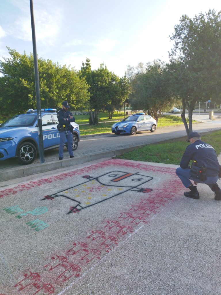 Sassari. Nella mattinata di ieri, gli Agenti della Sezione Volanti sono intervenuti presso il Parco di via Pertini, luogo di ritrovo per famiglie e giovani situato nelle vicinanze di una scuola per l’infanzia, in quanto all’interno dell’area parco giochi per bambini era stata segnalata la presenza di sei adulti intenti ad imbrattare un marciapiede pubblico.