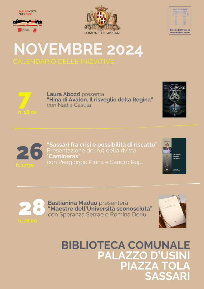 Sassari. Giovedì 7 novembre, alle 18, nella sala conferenze della biblioteca di piazza Tola, è in programma il primo dei tre appuntamenti con l’autore di novembre. Laura Abozzi presenterà “Hina di Avalon. Il risveglio della Regina”.