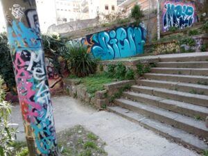 Che cosa abbia portato alla devastazione di uno spazio molto bello al centro della città è noto. Il dilagare dell’eroina negli anni Settanta trasformò la scalinata sotto viale Umberto nel regno dei tossicodipendenti. Per tanto tempo passarci, al buio ma anche di giorno, ha fatto paura, con l’aggravante di doversi destreggiare su un tappeto di siringhe.