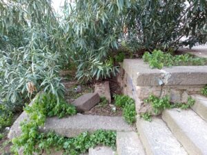 Non è un’opinione, ecco alcune foto degli ultimi giorni. La sporcizia onnipresente i blocchi di pietra delle aiuole divelti e sparsi qua e là, le piante che a volte, malridotte, resistono ma più spesso non ci sono più.