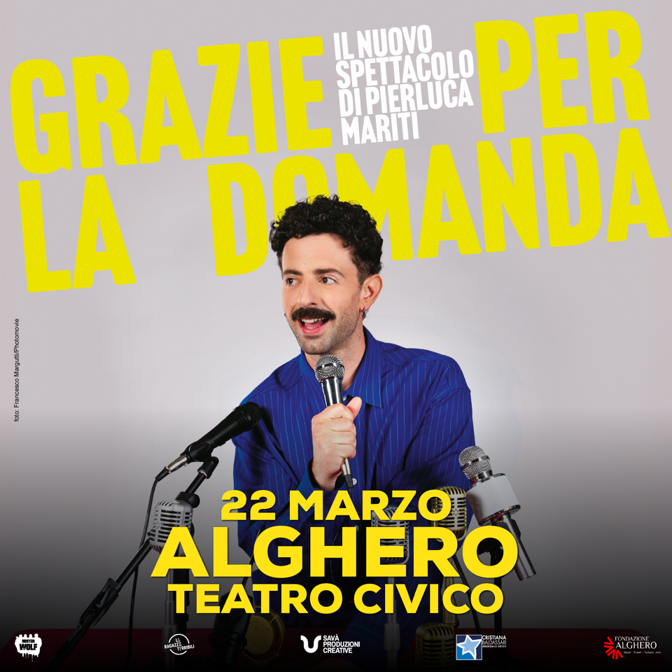 Se “Ho fatto il Classico” era un percorso nella letteratura alla ricerca di una chiave di attualità dopo due anni di pandemia e nuova normalità, Grazie per la domanda è invece un racconto personale, una lunga seduta di analisi senza l’analista, una confessione a cuore aperto e senza sconti: finalmente Pierluca fa il suo ritorno sul palco, atteso da tempo.