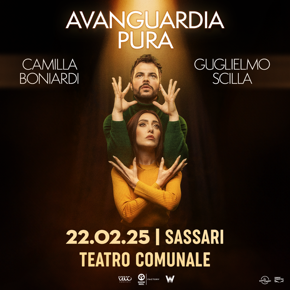 Camihawke e Guglielmo Scilla, già in scena insieme in una parte dello show “Il saggio di fine anno” la cui tournée ha registrato il sold out completo, hanno debuttato con un progetto che per la prima volta li ha visti entrambi protagonisti. “AVANGUARDIA PURA” è uno spettacolo coinvolgente e in grado di divertire il pubblico grazie alla sua comicità imprevedibile.